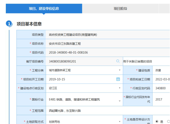 6. 找到要申報(bào)的項(xiàng)目,選擇查看或申報(bào)。進(jìn)入后首先完善項(xiàng)目、建設(shè)單位信息