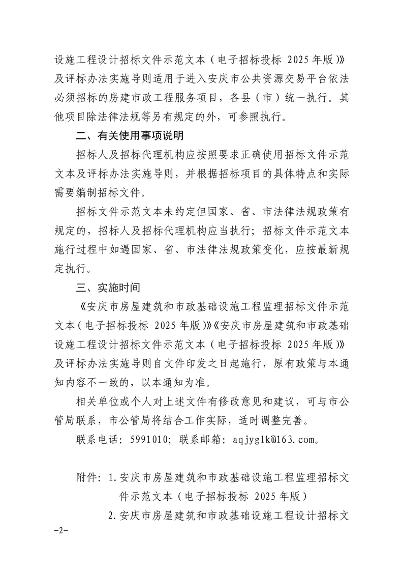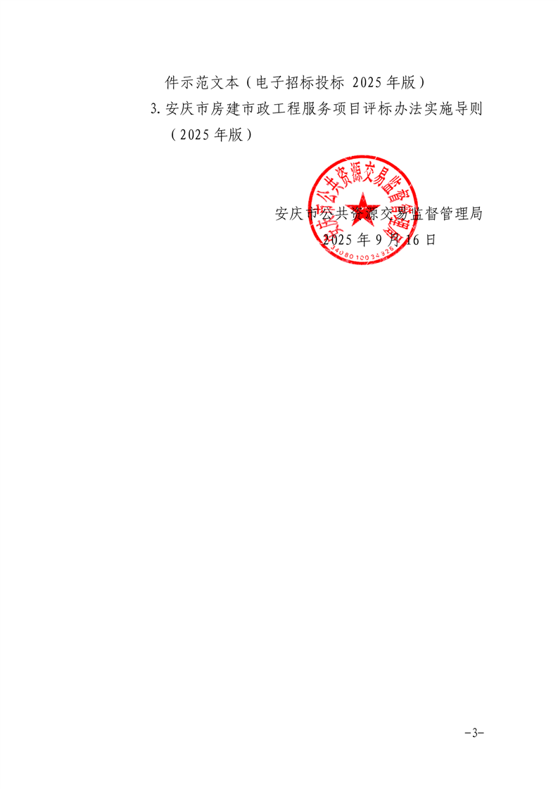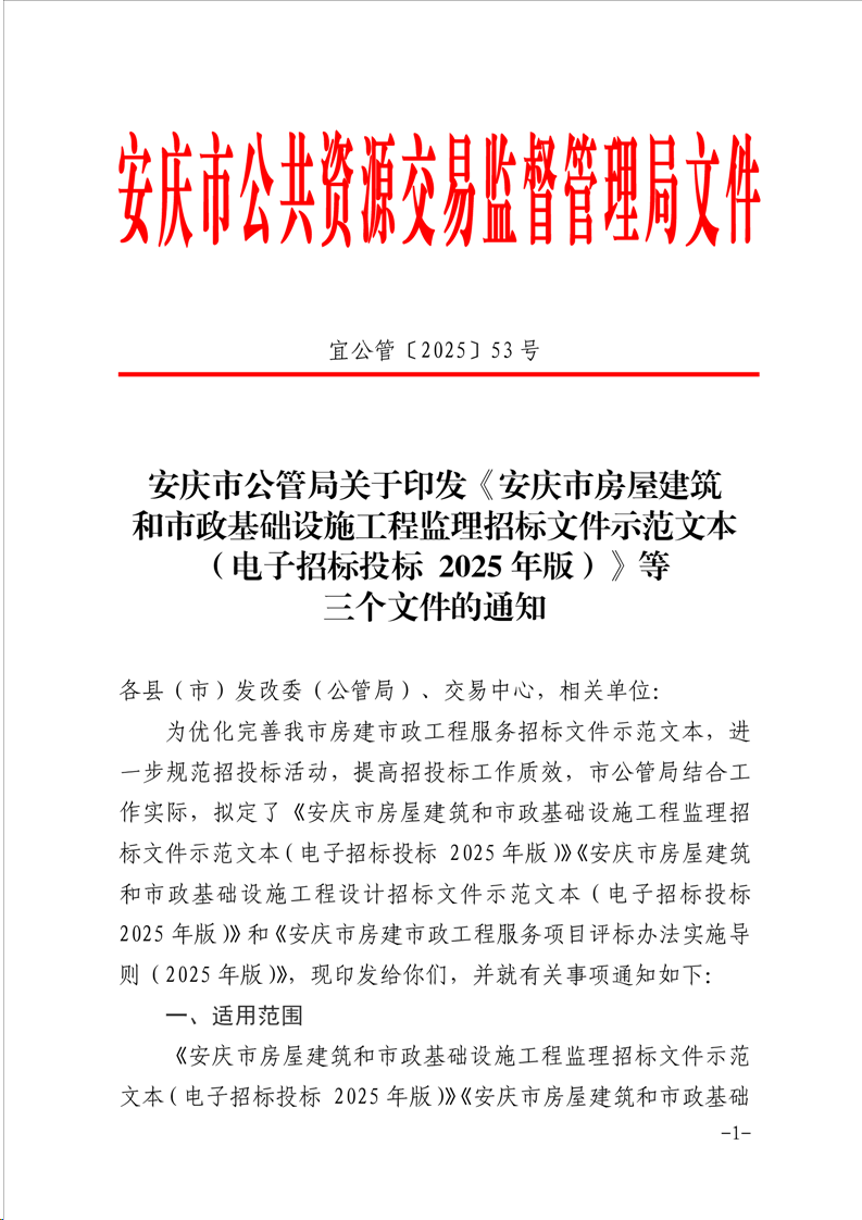 安慶市公管局關于印發(fā)《安慶市房屋建筑和市政基礎設施工程監(jiān)理招標文件示范文本(電子招標投標 2025年版)》等三個文件的通知