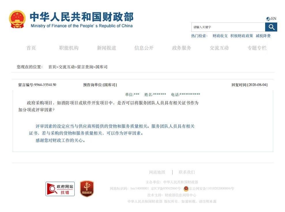 財(cái)政部回復(fù):執(zhí)行國家統(tǒng)一定價(jià)標(biāo)準(zhǔn)和采用固定價(jià)格采購的項(xiàng)目,其價(jià)格不列為評(píng)審因素。